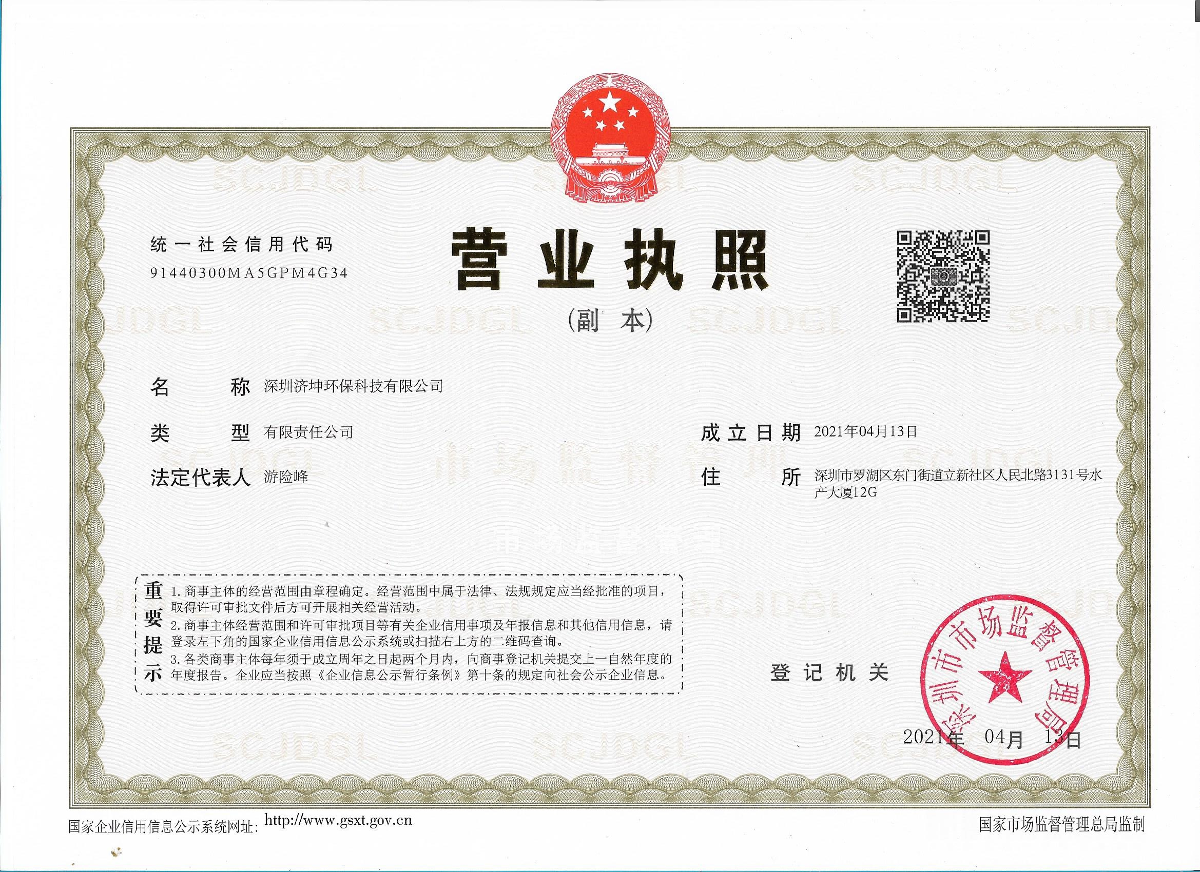 熱烈祝賀我司子公司深圳濟坤環保科技有限公司成立